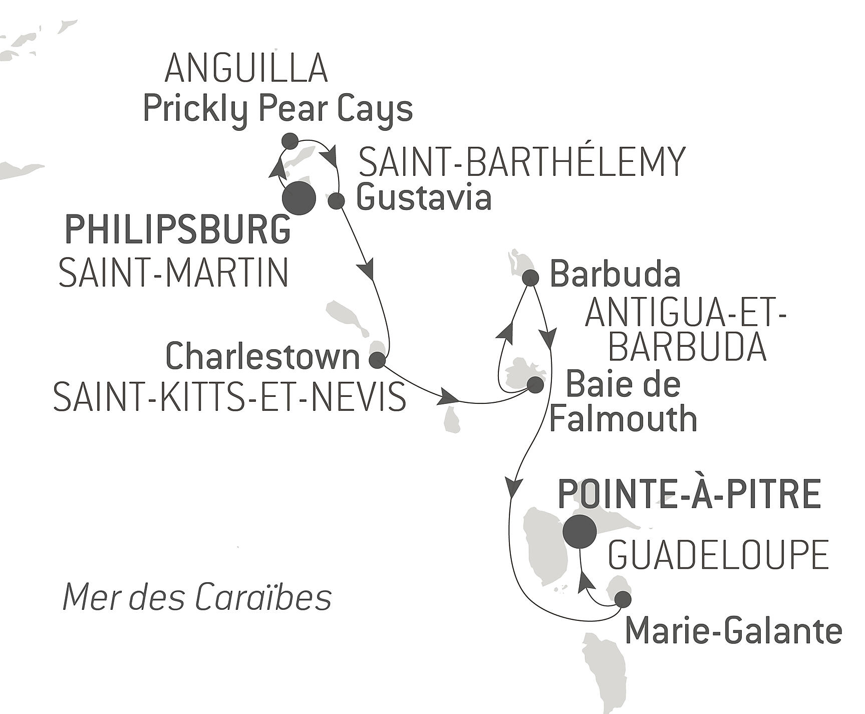 Caraïbes. La seule évocation de ce vaste archipel suffit à déployer limage dun ballet de vagues venant effleurer les longues plages au bord desquelles se dessine lombre frêle des palmiers. Lors de cette croisière inoubliable de 8 jours, laissez-vous aller à la contemplation et à lexploration à bord du voilier emblématique de PONANT.